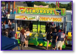 Fried Oreo's, Cotton Candy, Candy Apples, Corn Dogs, Fresh Squeezed Lemonade, Pizza,
